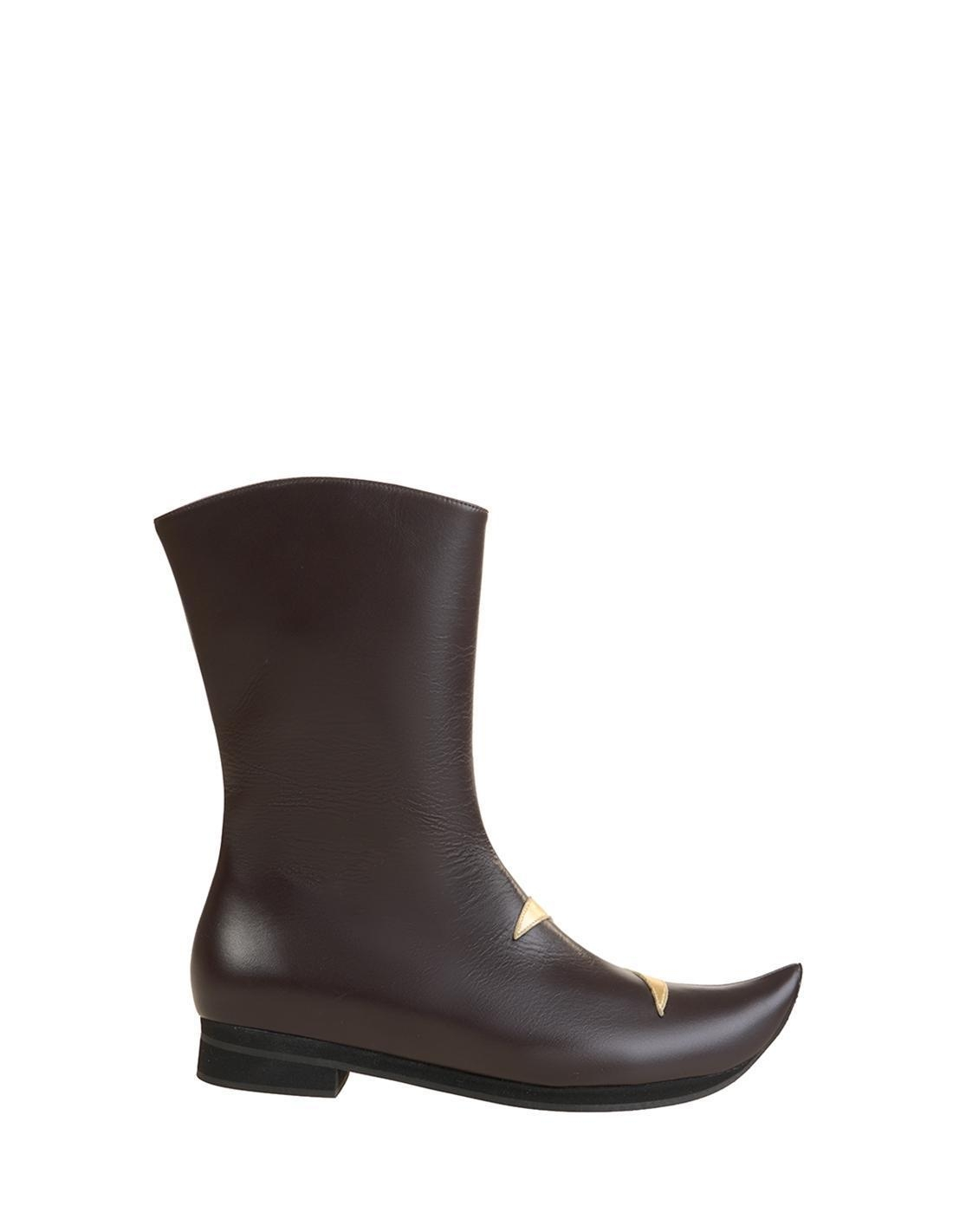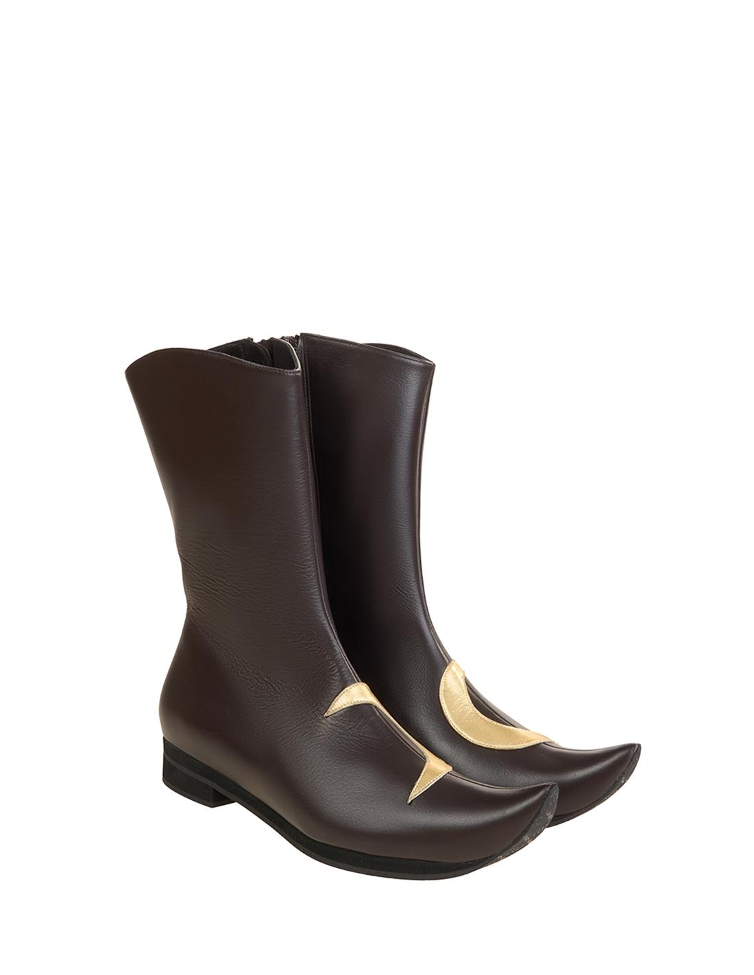 Bota punta mora color marrón chocolate y adorno en dorado.